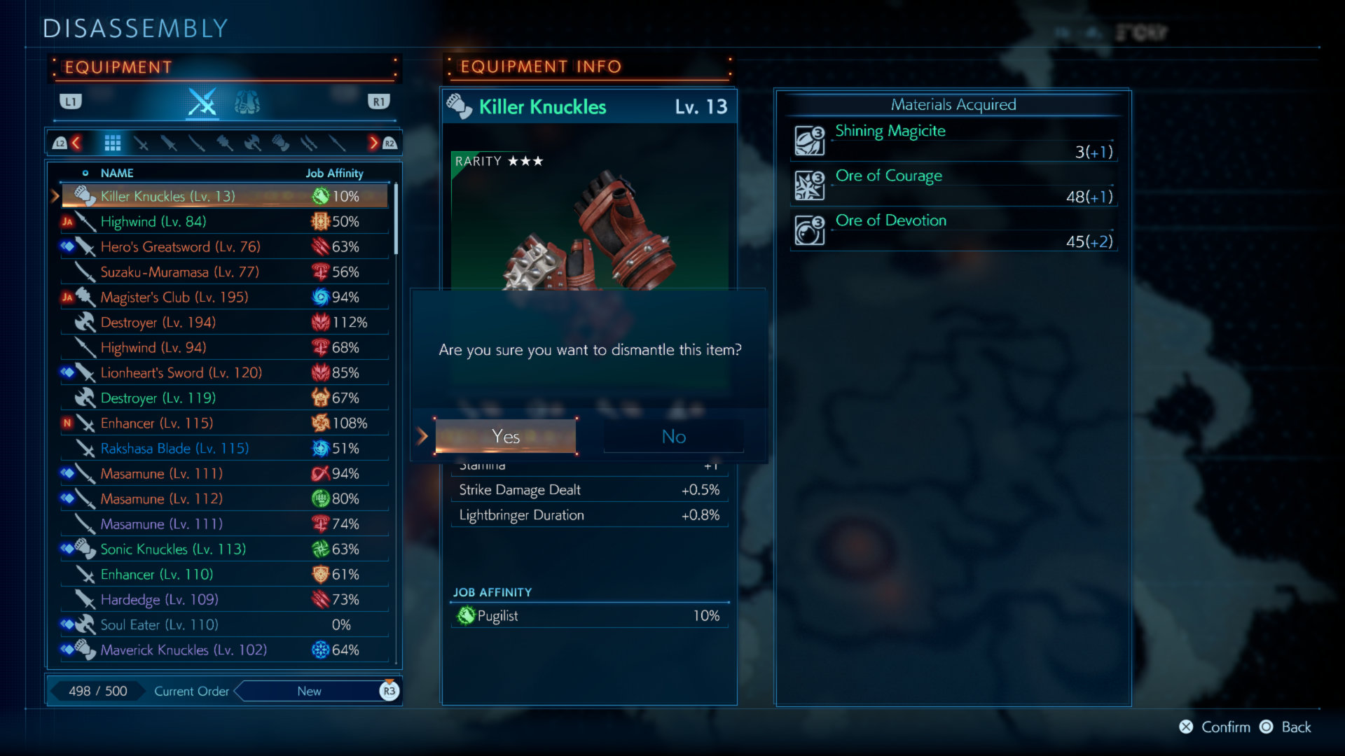 Throughout Stranger of Paradise Final Fantasy Origin, players will find new equipment by defeating enemies and finding it in chests. Since each piece of equipment can have different properties such as job affinities or special effects, it’s helpful to replay missions to find different loot. Equipment can be upgraded with materials at the smithy, or dismantled to receive additional materials.