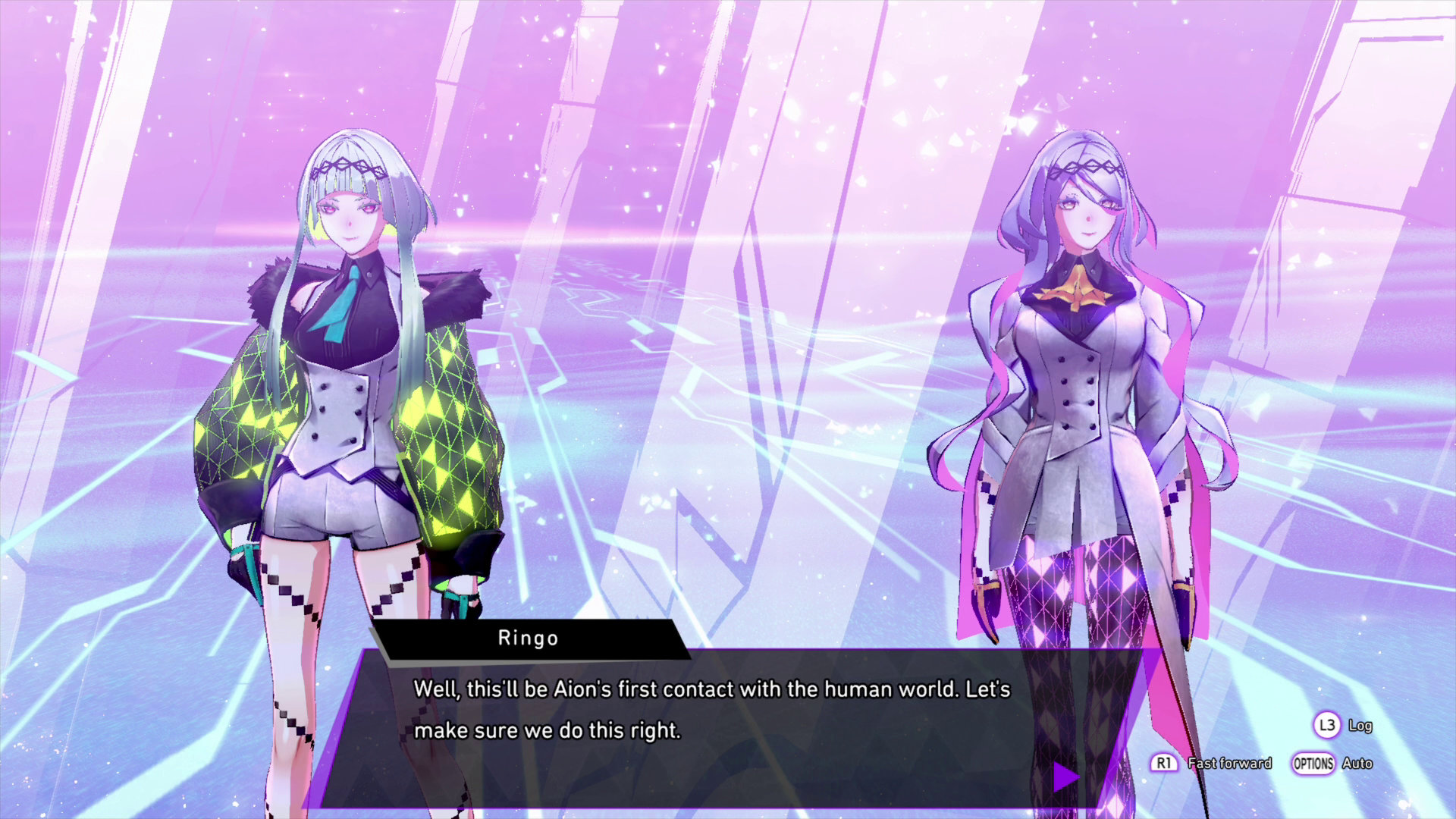 Another of Aion’s agents, like Ringo. Cool and thoughtful, she acts like an older sister to Ringo and keeps her in check, as Ringo tends to be more stubborn. She, too, displays interest and admiration for humans, and is friendly to them. She specializes in analyzing information, and supports the team from behind the scenes.
