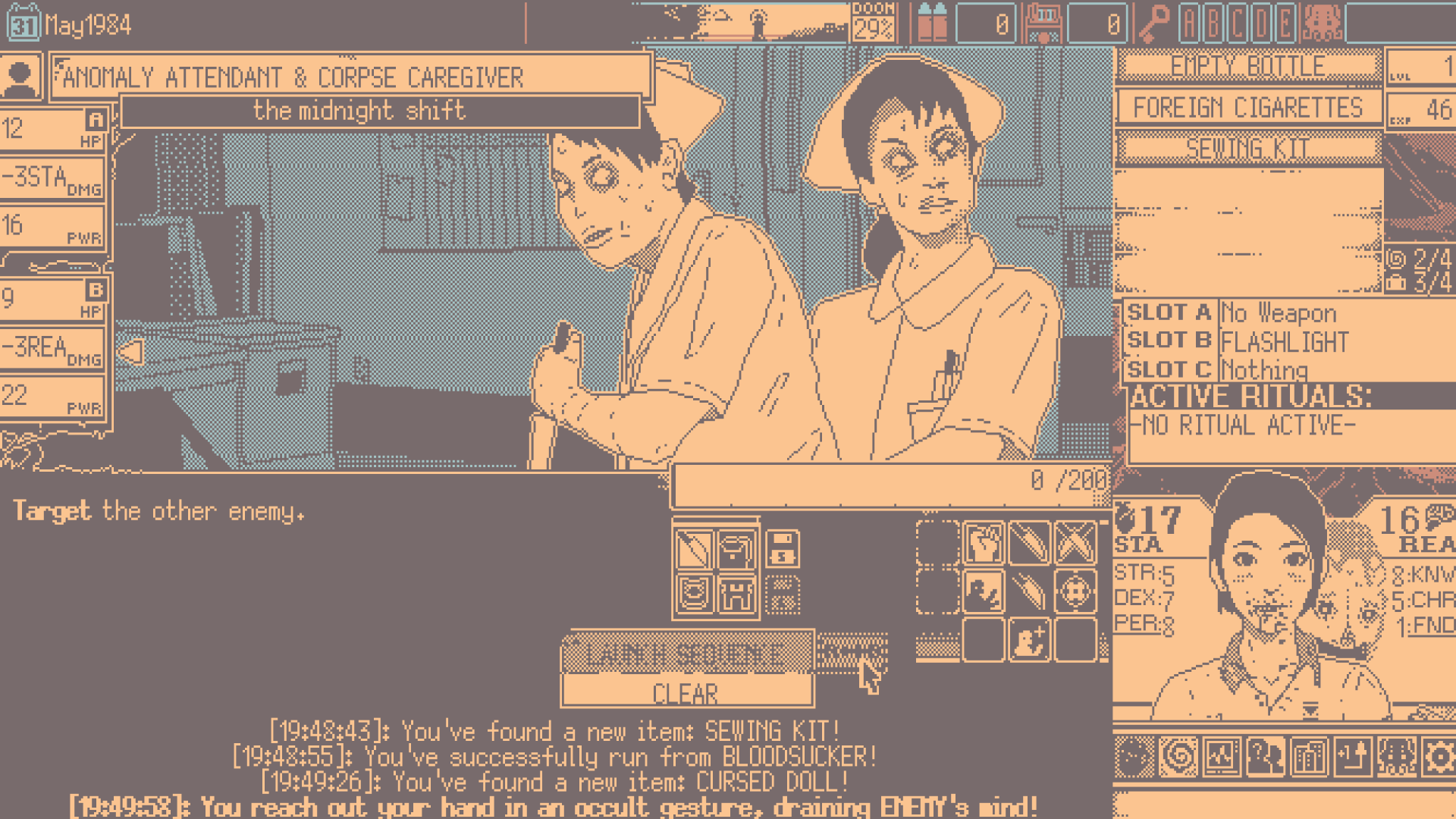 Fill in the stylistic gaps of what lies behind each corner in its 1-bit artwork crafted entirely on Microsoft Paint and inspired by vintage Macintosh graphics. With its eerie rural city scenes and psychologically thrilling monsters and bosses, WORLD OF HORROR feels like a page torn straight from the works of Junji Ito and H.P Lovecraft.
