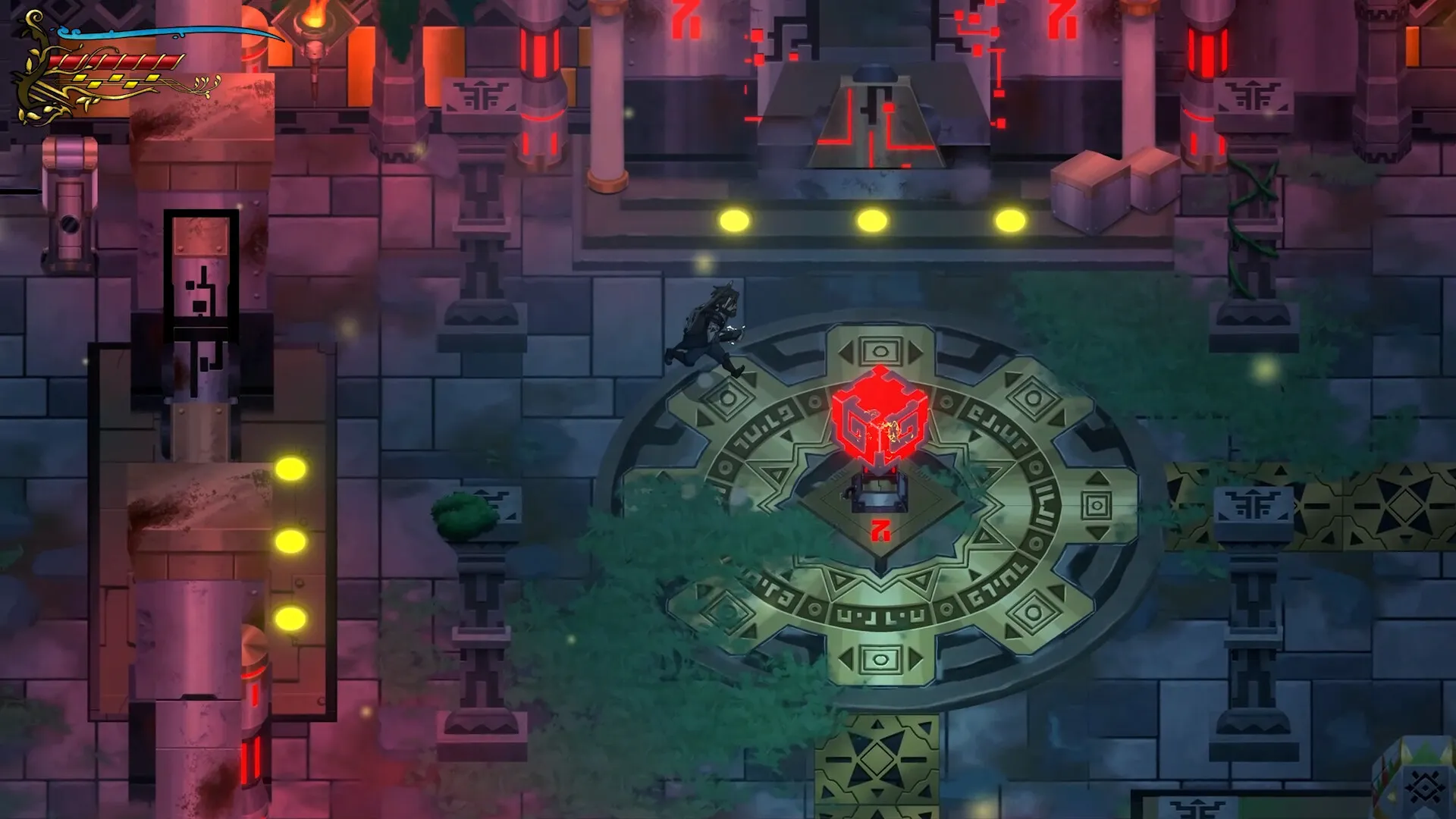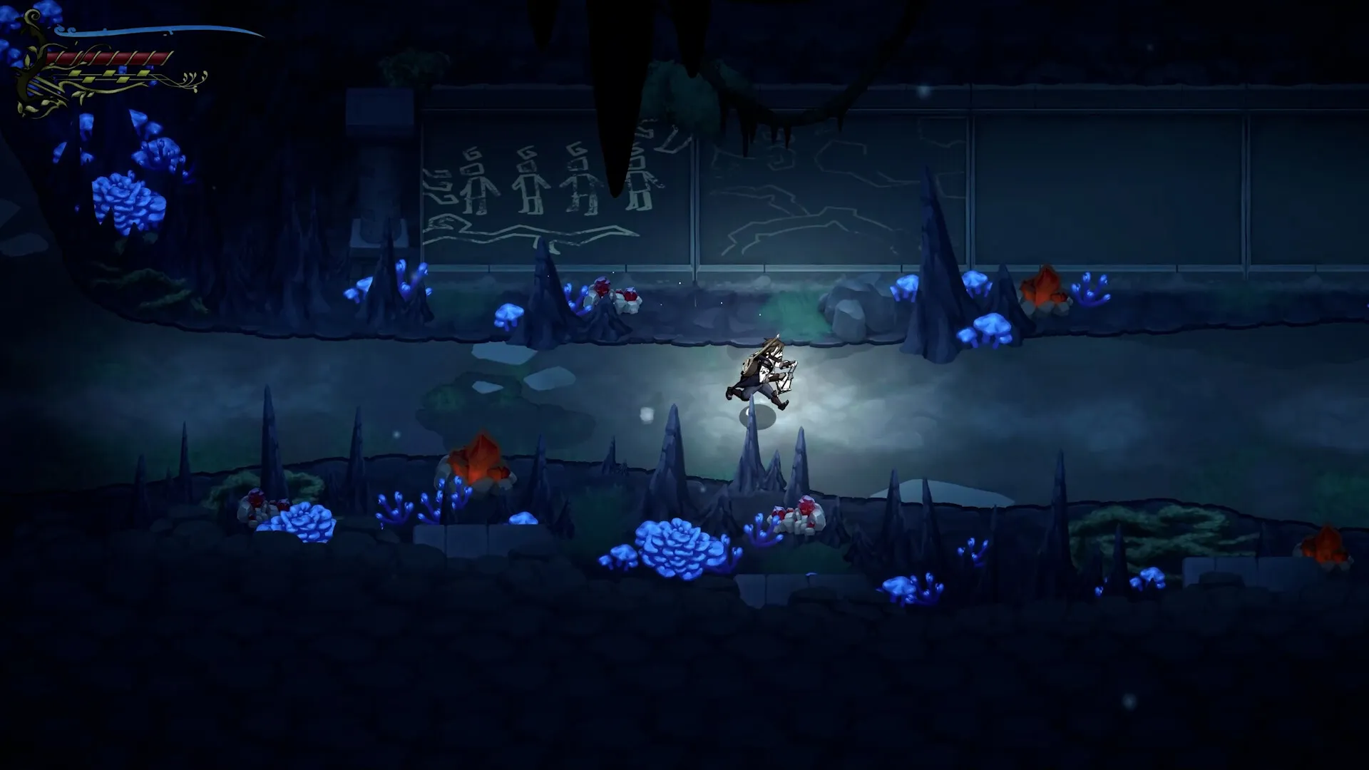 A domain full of mysteries and secrets awaits! Dangers and opportunities lurk among the trees and ruins that fill the ancient woods. Traveler will meet other adventurers, pursuing their own goals, be they human or robot. He will also encounter ancient mysteries that only his mastery of song-spells can solve, by altering environments and manipulating objects.
