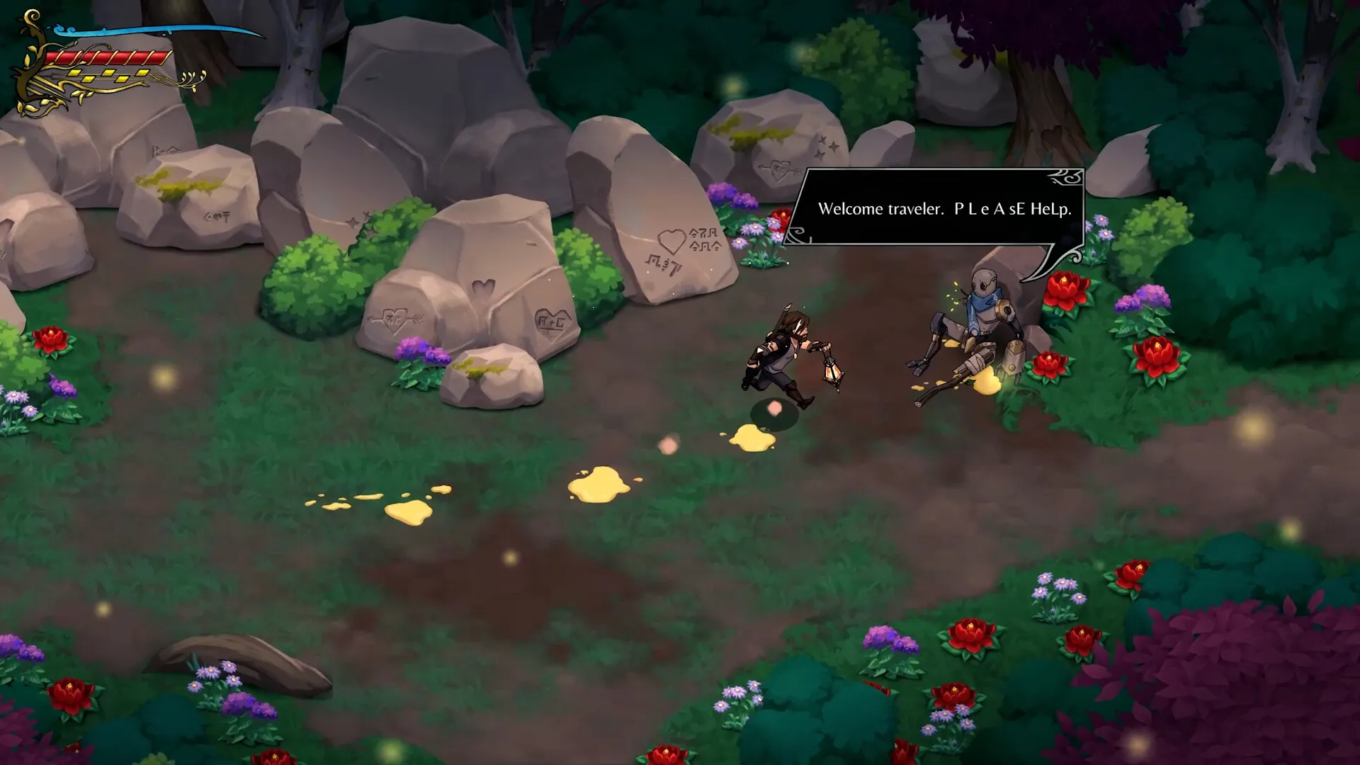 Traveler’s Refrain is a dark song-casting, story-driven action RPG about one man’s quest to find his long-lost love and rekindle his passion. Armed with a magical bouzouki, Traveler will face horrific abominations, challenging puzzles, and unravel the mysteries of a dark forest forbidden to all, as an ancient conflict reaches a fever pitch. It is up to the player to defy the Mecha-Goddesses of Fate and find the machine that will reunite Traveler with his long-lost love.