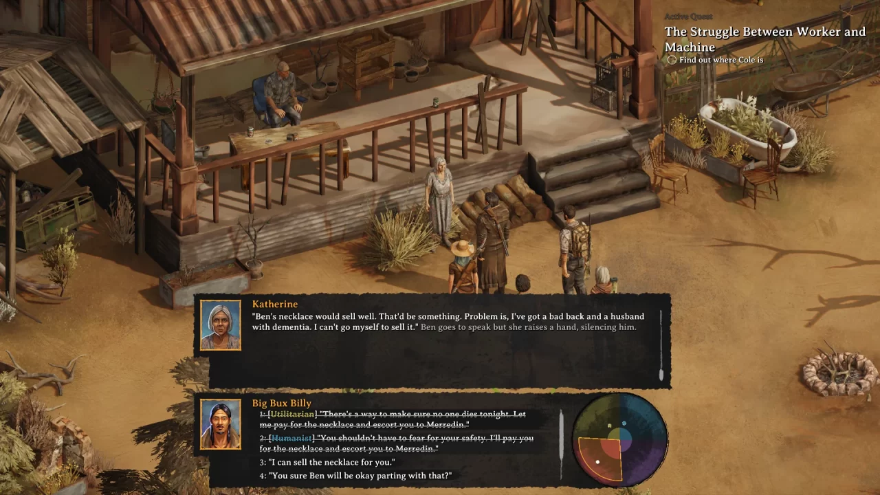 RPGFan: The Moral Compass system in Broken Roads is quite novel and seemingly dynamic. Was this a central concept from the beginning or did it emerge throughout early development? What influences led to this morality system?