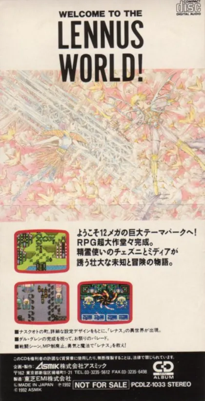 Take Lennus for example. Known as Paladin’s Quest in the US, Lennus was a decent turn-based RPG for Super Famicom with music from one of my favorite composers, Kouhei Tanaka (known for Sakura Taisen and Alundra). Lennus had an official album printed by Future Land in December of ’92. It had five arranged medleys, and five short drama tracks. While that album was certainly a neat one, the question remains: where can we find the original music?