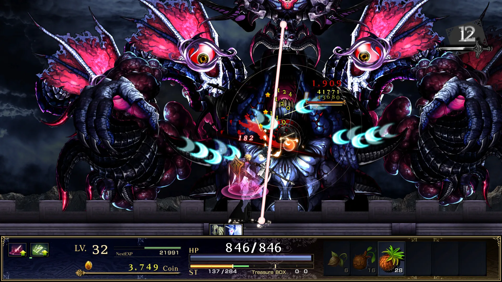 This Revision version of the game adds some additional post-game content to an already lengthy game, as well as an arena inside of Rispadar where you can challenge demons for more rewards throughout the journey. The presentation was also upgraded slightly, with Vanillaware artist Shigatake providing some redrawn character sprites and portraits, as well as redoing some of the boss designs. These massive, detailed bosses are a visual highlight, but the rest of the game is made up of assets purchased from asset packs that vary wildly in quality. It’s a consequence of ASTLIBRA Revision’s humble origins as a solo-developer freeware project, and while some of the background elements are especially ugly, the hodge-podge of contrasting assets gives the game a rugged sense of charm. It also lends a dreamlike quality to the game’s world, which fits in well with the game’s themes and central mystery. The music is similarly incohesive, featuring a variety of licensed music library tracks that, while enjoyable enough on their own, don’t always fit the events on screen.