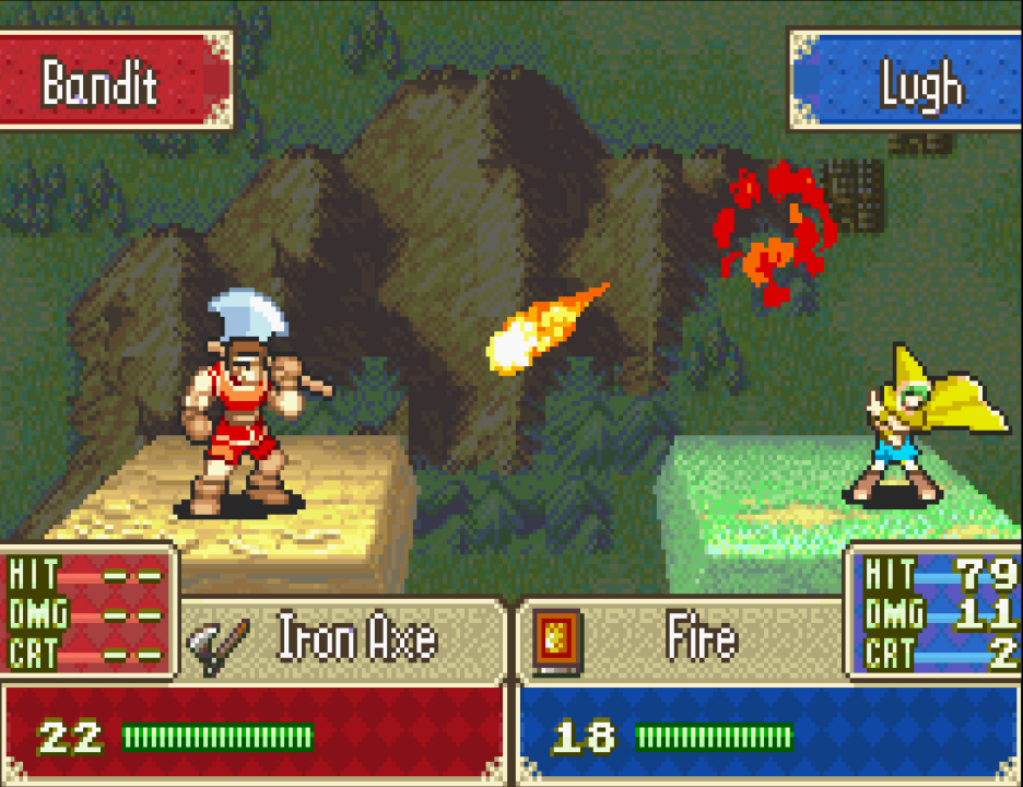 This system generally favors player units since enemies tend to have lower hit rates than allies (barring some of the more difficult enemies on hard mode). Despite this, Fire Emblem: The Binding Blade is known for frequent missed attacks by allies and enemies alike because weapons have low accuracy in this game relative to other GBA Fire Emblem games. Hit rates in Fire Emblem: The Binding Blade are often very shaky. Planning around frequent missed attacks is essential for success.